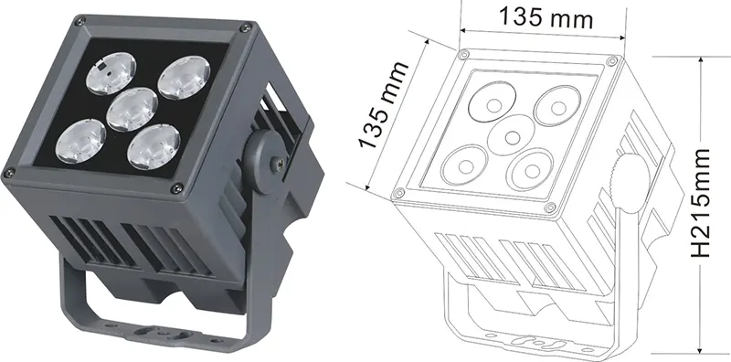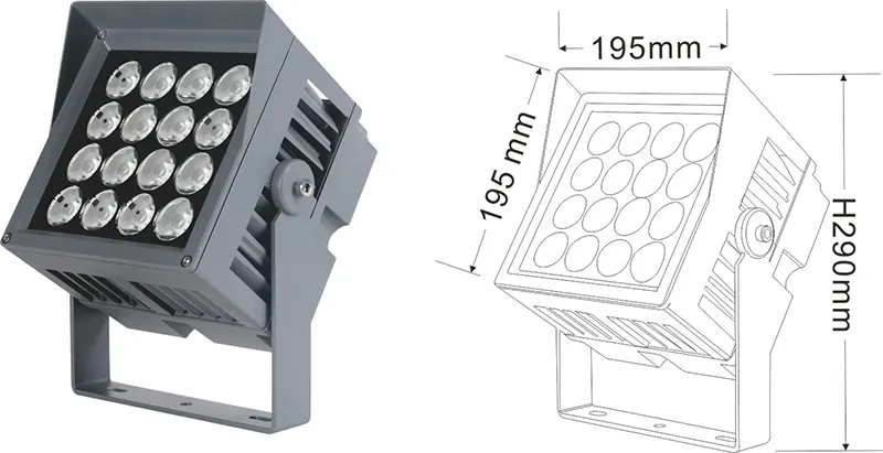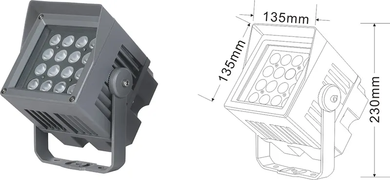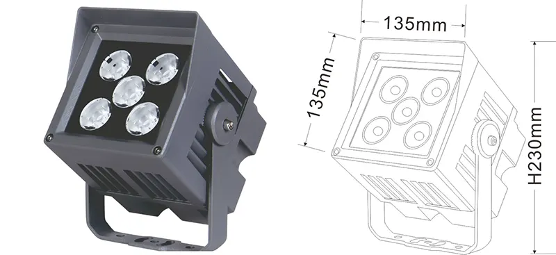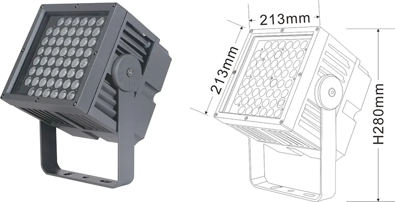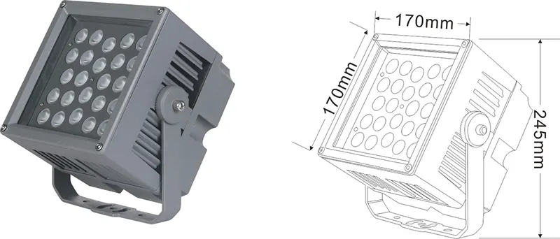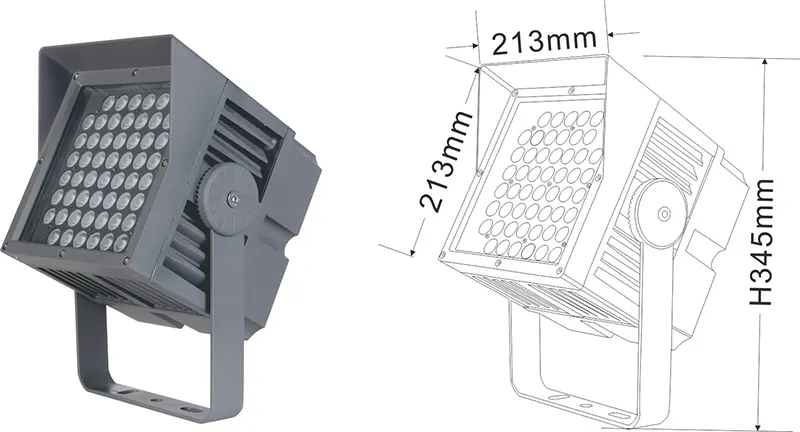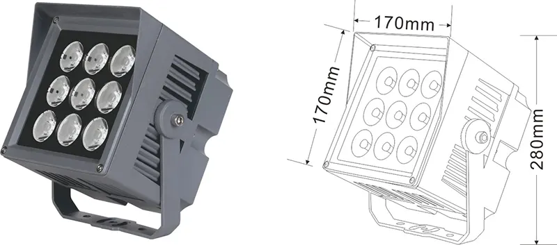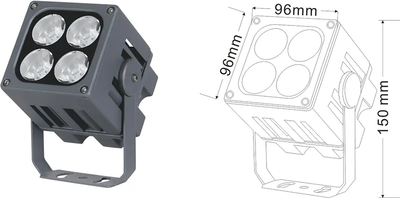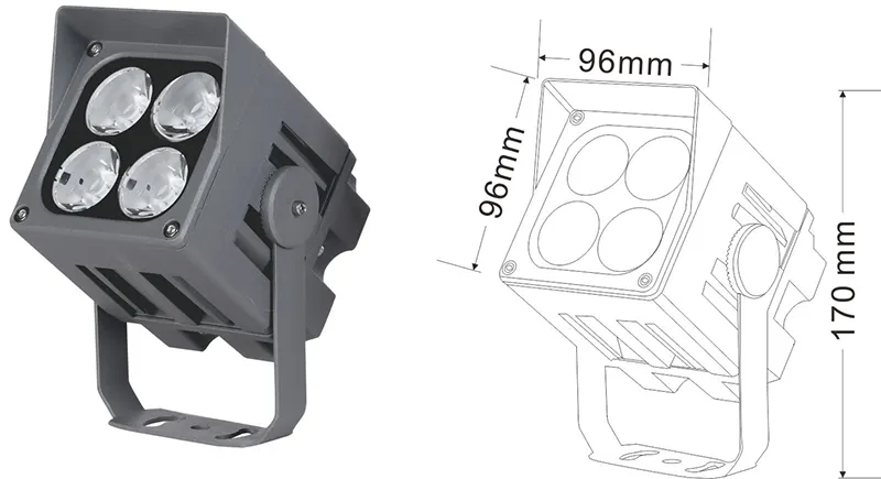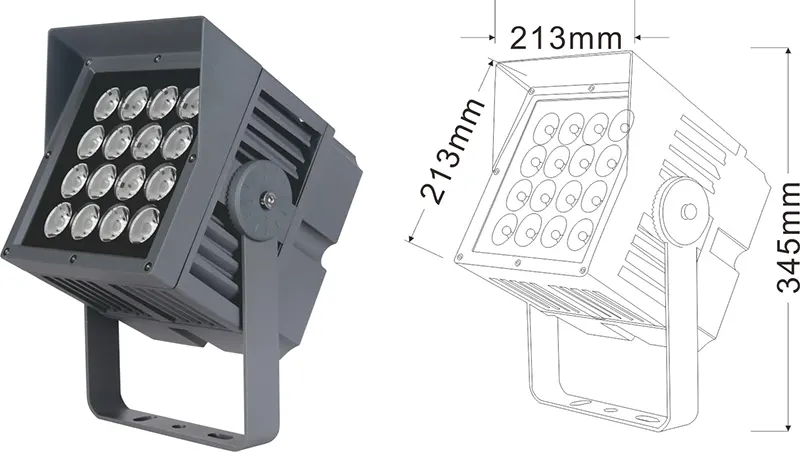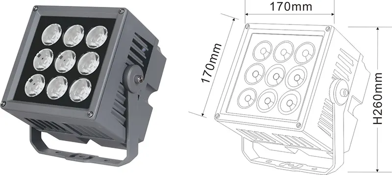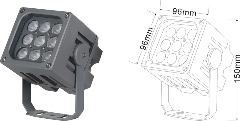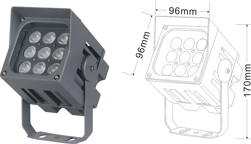 | Proyektor Lansekap LED | Con-tgd06-1 | 96*96*150mm | 9*2W | Bahan: Aluminium+Kaca Tempered Jenis braket: disesuaikan IP: IP67 Suhu Warna Opsional: 3000K/4000K/6500K RGB / DMX512 RGBW / DMX512 abu -abu, dapat disesuaikan untuk cocok dengan bangunan warna fasad |